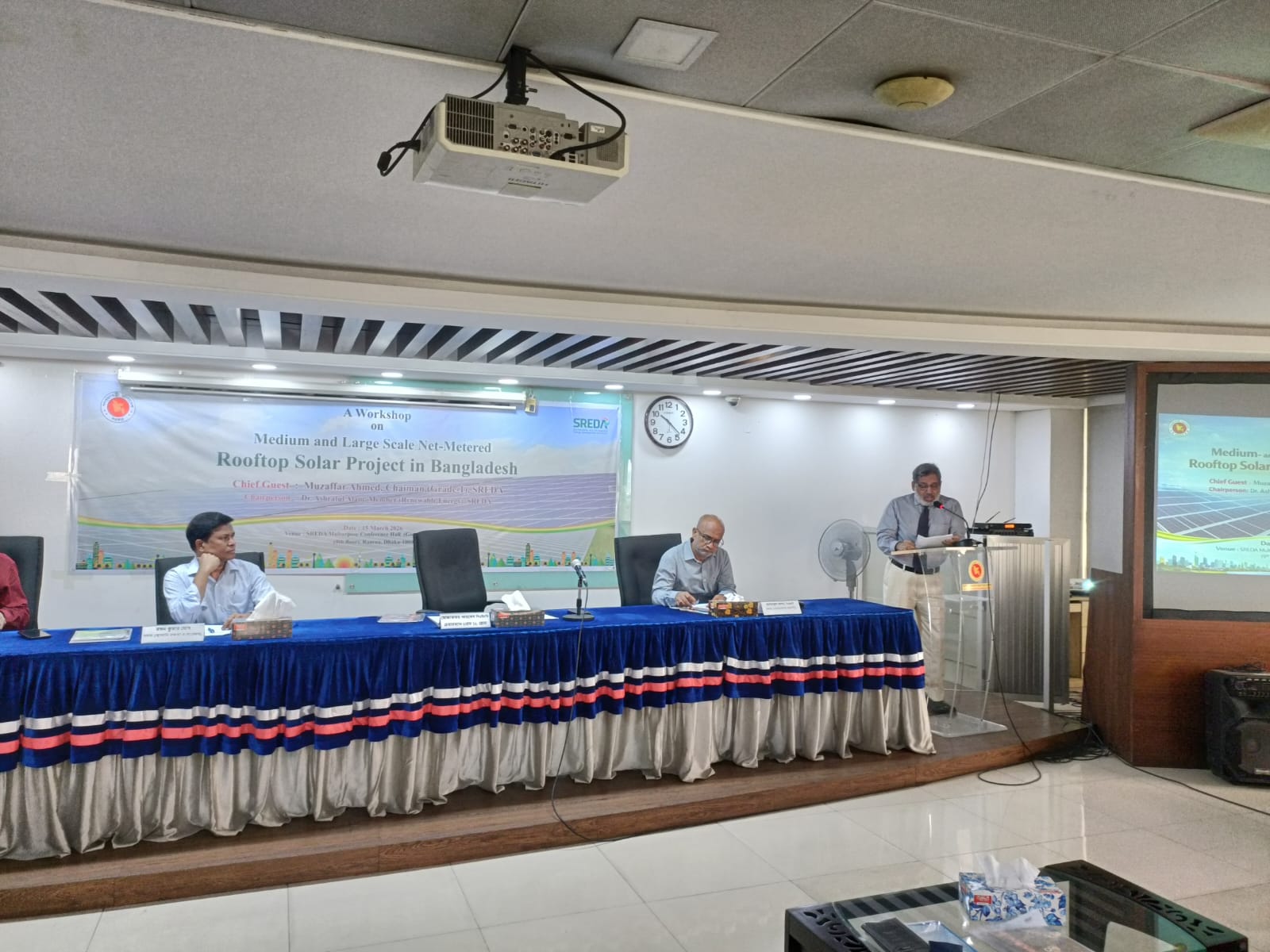 বাংলাদেশে নেট-মিটার্ড রুফটপ সোলার প্রকল্পের সম্প্রসারণ, বাস্তবায়ন প্রক্রিয়া সহজতর করা এবং সংশ্লিষ্ট অংশীজনদের মধ্যে সমন্বয় জোরদারের লক্ষ্যে টেকসই ও নবায়নযোগ্য জ্বালানি উন্নয়ন কর্তৃপক্ষ (স্রেডা) একটি কর্মশালার আয়োজন করে। ‘Medium- and Large-Scale Net-Metered Rooftop Solar Projects in Bangladesh’ শীর্ষক এ কর্মশালাটি ১৫ মার্চ ২০২৬ তারিখ সকাল ৯:৩০ ঘটিকায় স্রেডার সম্মেলন কক্ষ ‘গোমতী’ (আইইবি ভবন, লেভেল-৯, রমনা, ঢাকা)-তে অনুষ্ঠিত হয়।