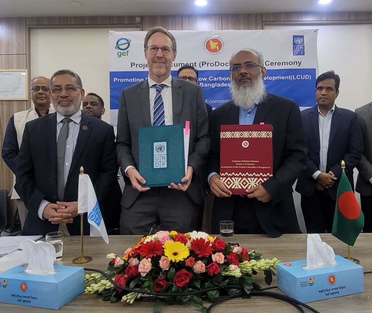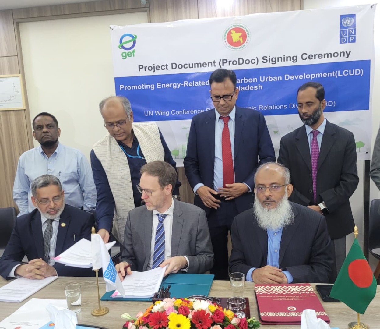 The Signing Ceremony of the Project Document of the project titled “Promoting Energy-Related Low Carbon Urban Development (LCUD) in Bangladesh” was held on 02 November 2025 at Economic Relations Division (ERD), Sher-e-Bangla Nagar, Dhaka. Mr. Md. Shahriar Kader Siddiky, Secretary of ERD on behalf of the Government of Bangladesh; Ms. Farzana Mamtaz, Secretary, Power Division as implementing ministry and Mr. Stefan Liller, Resident Representative, UNDP Bangladesh on behalf of the UNDP have signed the Project Document. At the signing ceremony, Mr. Muzaffar Ahmed, Chairman (Grade-1), SREDA and Engr. Md. Muzibur Rahman, Project Director of the aforesaid project and Director (RE), SREDA were present. Bangladesh will get US$ 3.76 million as a grant from UNDP GEF. The objective of the project is “To reduce GHG emissions by enabling investments in renewable energy and energy-efficiency to support urban development in Bangladesh”. SREDA, under supervision of Power Division will implement the project in Dhaka and Chattogram City Corporation areas within June 2029.
